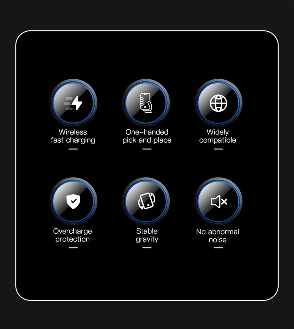 Funktionen: 15W Schnellladung, Infrarot-Induktions-Autoklemme, intelligente Erkennungsladung, Ladeschutz (Kurzschlussschutz, Überladeschutz, Überstromschutz, Überspannungsschutz), stabile Handyhalterung